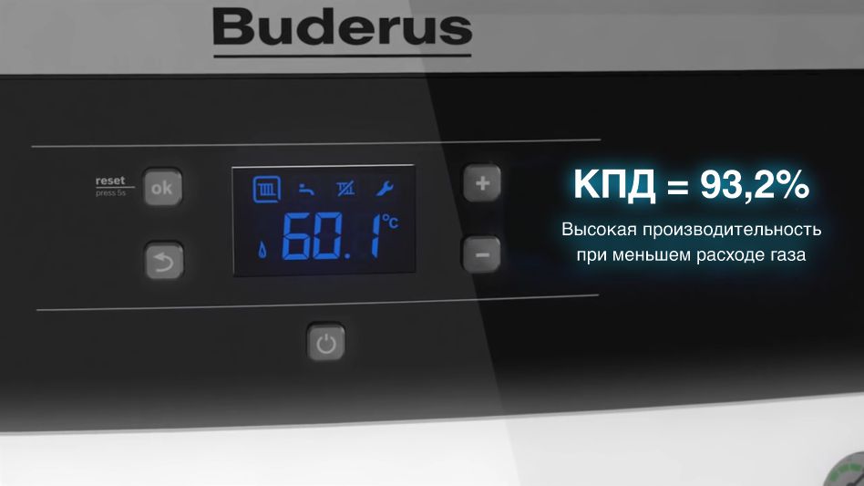 Широкий диапазон модулирования при приготовлении горячей воды и при отоплении.