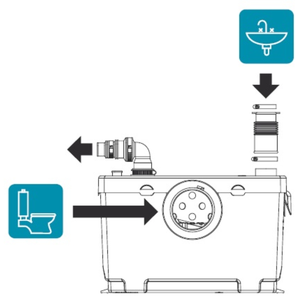 Бытовая система измельчения для стоков от унитазов и умывальников туалетных комнат, расположенных в любой части дома.