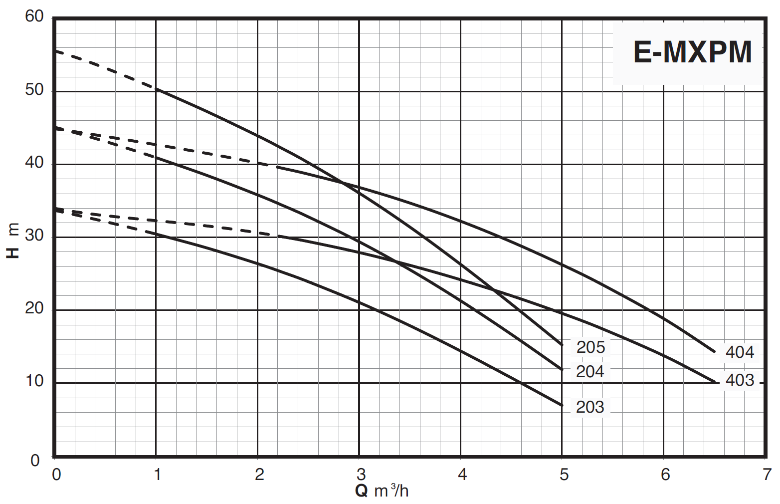 E-MXPM 404 PCD | 0.75 кВт | 220 В | 3.5 м3/ч | 6.5 м3/ч | 34.7 м | 44.9 м | 25 | 25 | 62 816 |