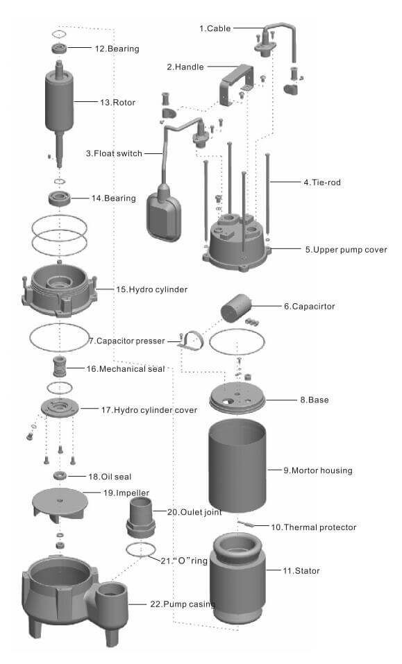 Подходит для использования с грязной водой, химически не агрессивной по отношению к материалам, из которых изготовлен насос.
