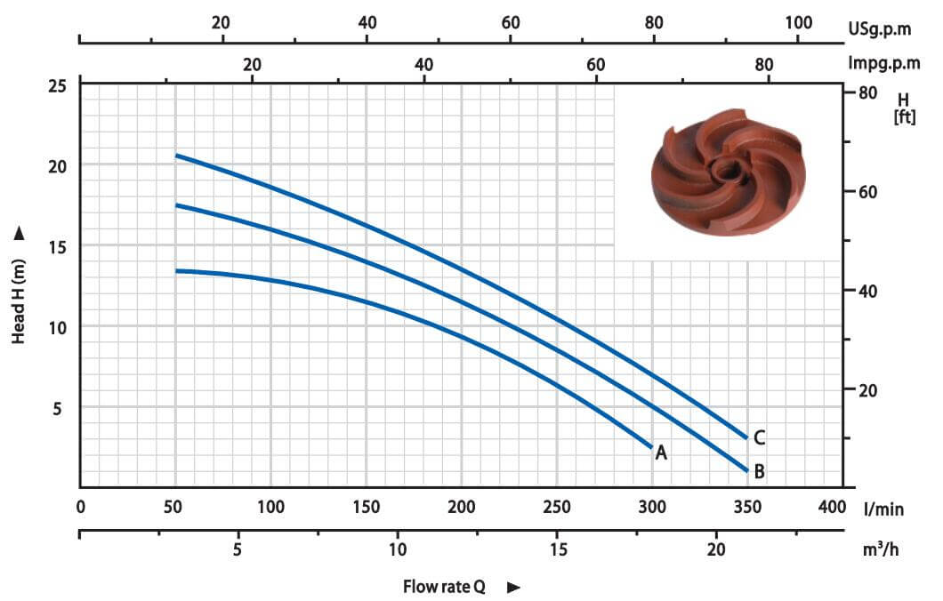 | CUT1500 | 1.5 кВт | 220 В | 12 м3/ч | 21 м3/ч | 13.5 м | 20.5 м | 50 | 22 500 |