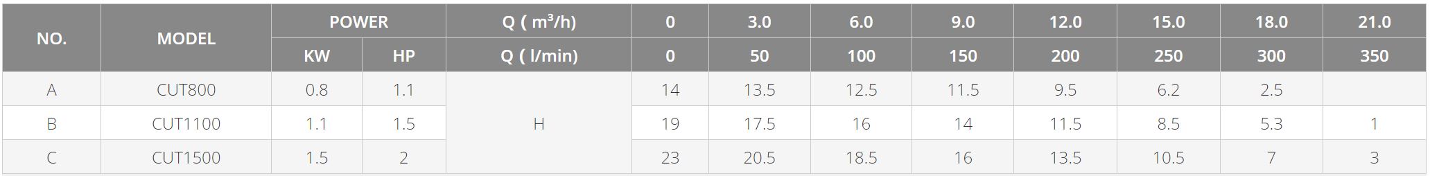 Насосы CUT специально разработаны для перекачивания неочищенных сточных вод из бытовых, коммерческих или муниципальных источников. Высокое давление нагнетания позволяет перекачивать сточные воды на большие расстояния. Насос может легко разрезать смесь волокон в воде, например: перчатки, веревки, ткань. Не имеет намотки и не имеет препятствий. Он также может снизить потребление энергии и свести к минимуму затраты на простои, сохраняя при этом максимальную производительность в течение всего срока службы системы.