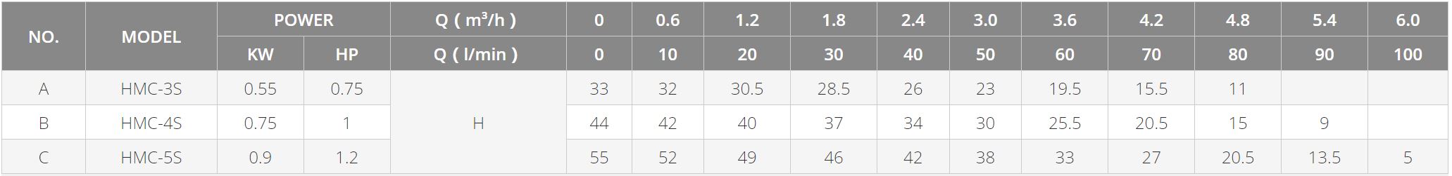| HMC-5S-E | 0.9 кВт | 220 В | 3.3 м3/ч | 6 м3/ч | 35.5 м | 52 м | 25 | 25 | 16 000 |