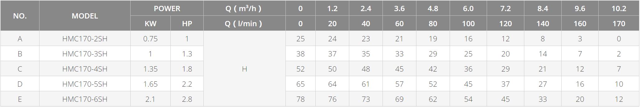 | HMC170-5SH-E | 1.65 кВт | 220 В | 6 м3/ч | 10.2 м3/ч | 45 м | 64 м | 32 | 32 | 24 700 |