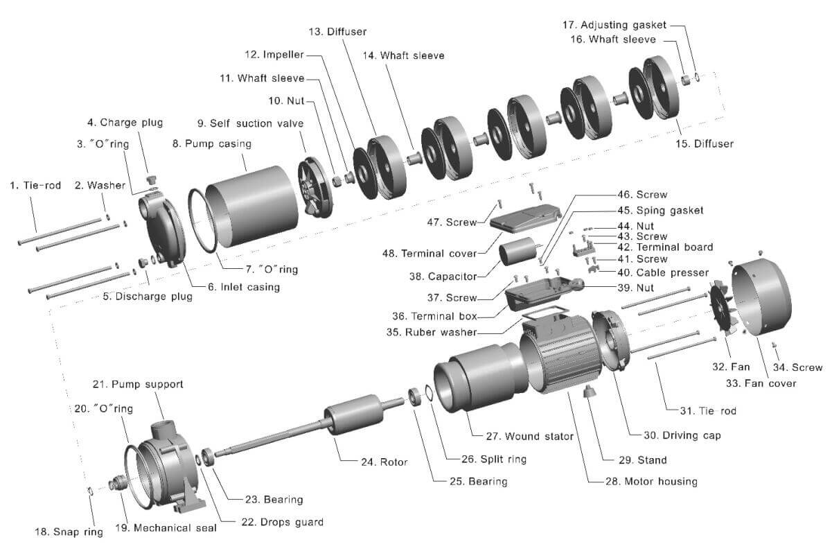 Подходит для использования с чистой водой, даже в присутствии воздуха, а также с жидкостями, химически не агрессивными по отношению к материалам, из которых изготовлен насос.
