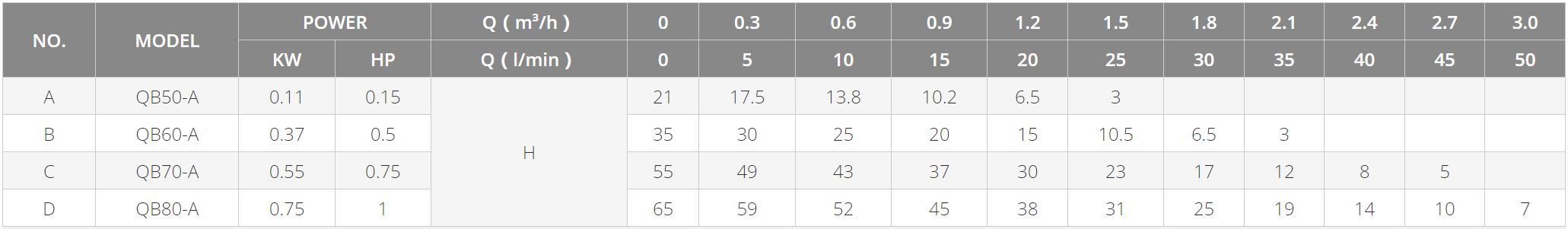 | QB70 | 0.55 кВт | 220 В | 1.5 м3/ч | 2.7 м3/ч | 23 м | 49 м | 25 | 25 | 5 600 |
