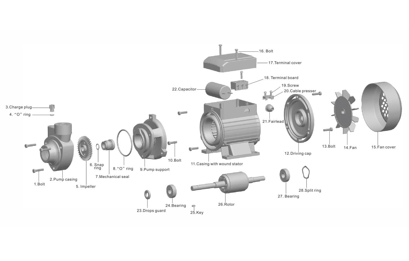 Подходит для использования с чистой водой, не содержащей абразивных частиц, и жидкостями, химически не агрессивными по отношению к материалам, из которых изготовлен насос.