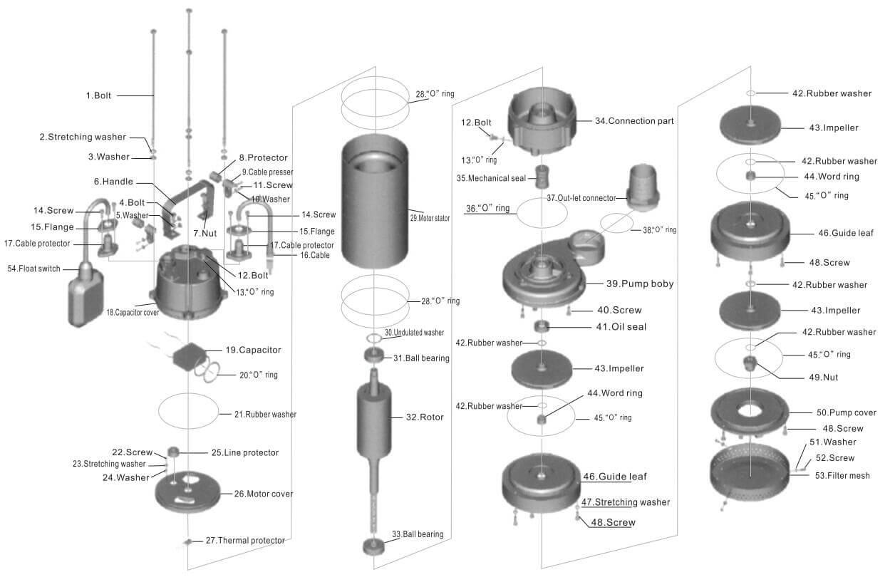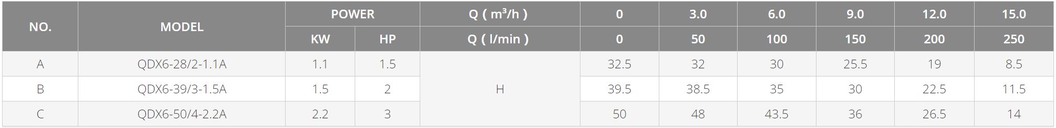 | QDX6-50/4-2.2A | 2.2 кВт | 220 В | 9 м3/ч | 15 м3/ч | 36 м | 48 м | 50 | 22 600 |