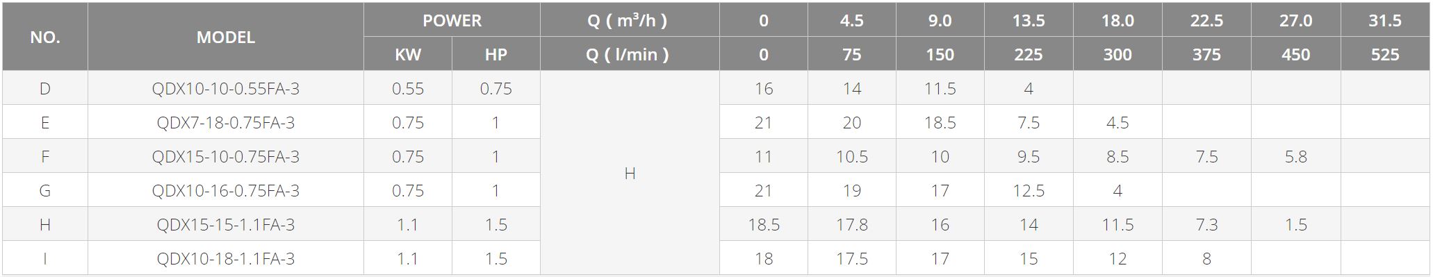 | QDX10-10-0.55FA | 0.55 кВт | 220 В | 9 м3/ч | 13.5 м3/ч | 11.5 м | 14 м | 40 | 9 700 |